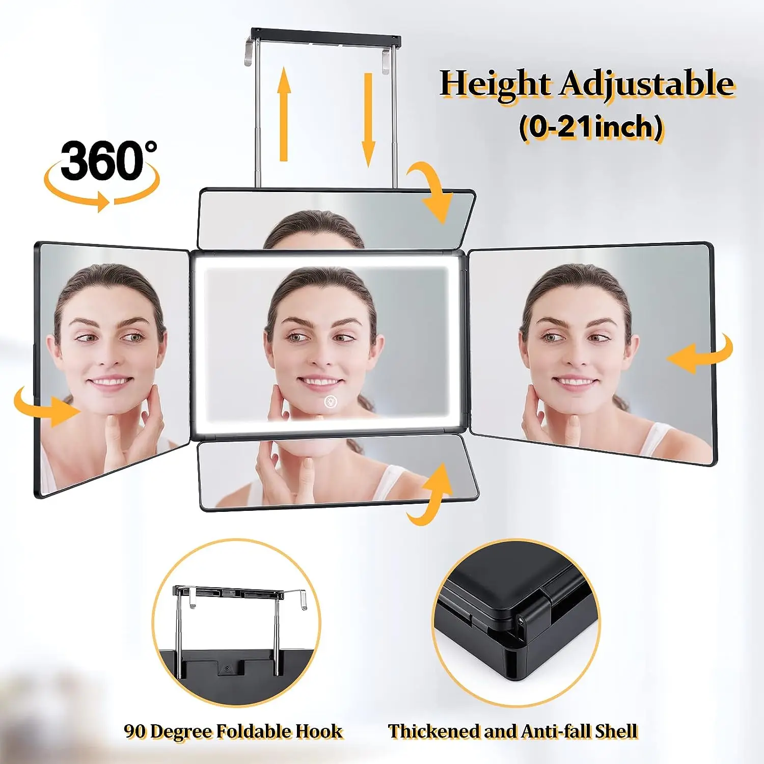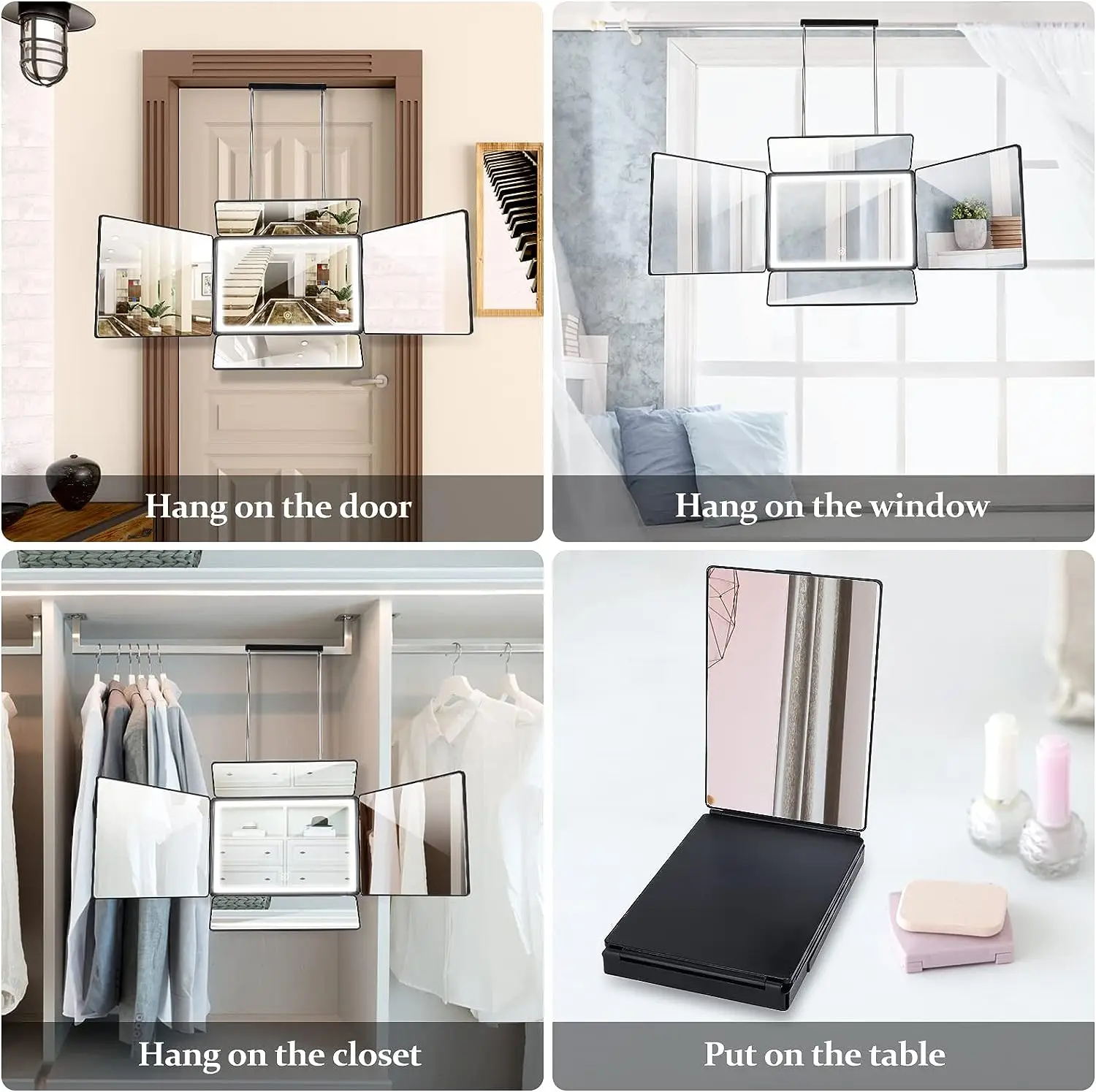 5 방향 거울, 셀프 헤어 커팅용 이발사 거울, 남성용 360 ° 면도 거울, 브레이딩용 높이 조절 메이크업 거울