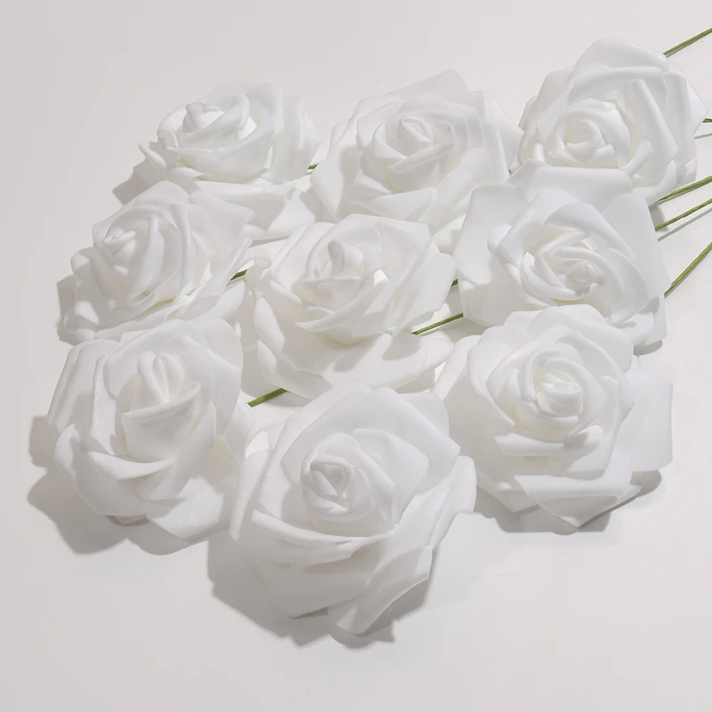 50 개/패키지 흰색 PE 장미 인공 꽃 머리 줄기 DIY 꽃다발 웨딩 파티 장식 스크랩북 용품