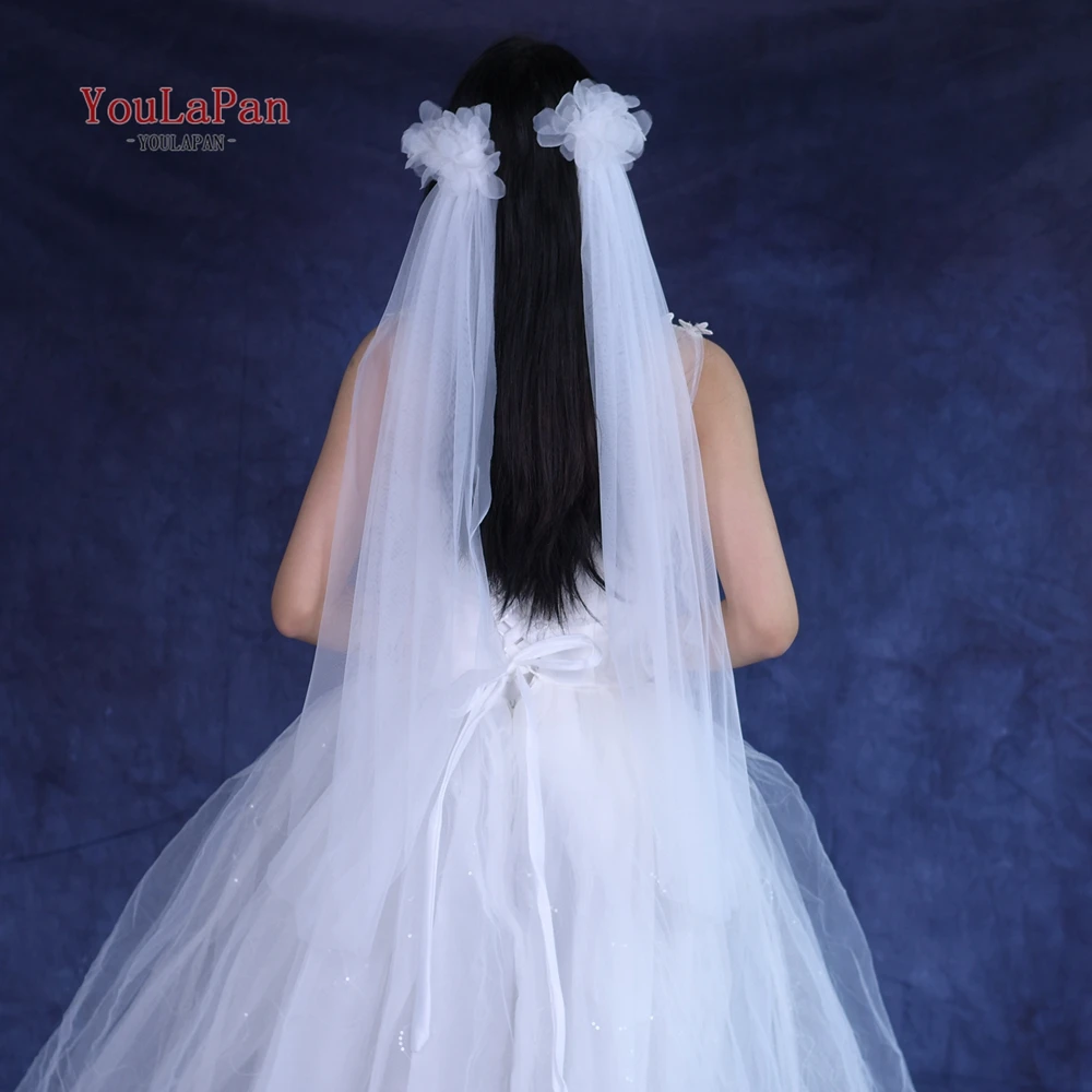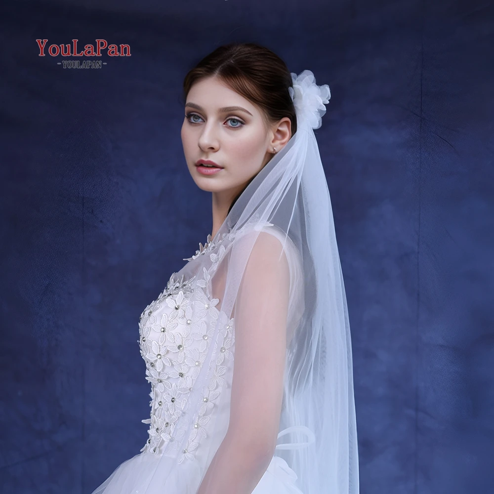 TOPQUEEN 심플 레트로 스타일 신부 베일 2 피스 리본 빗 웨딩 액세서리 Velos De Novia Flores