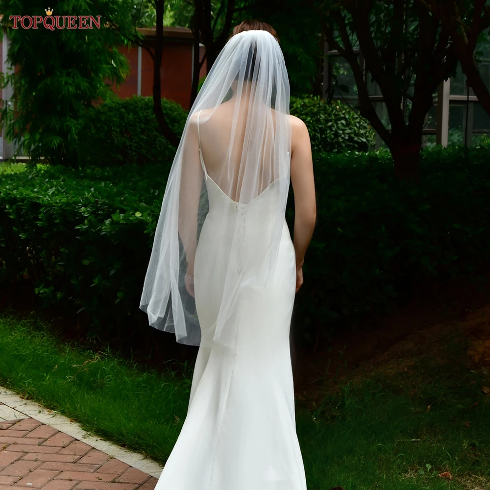 TOPQUEEN V30 클래식 신부 웨딩 베일 일반 원사 1 계층 소프트 웨딩 롱 베일 빗 웨딩 드레스 액세서리 블랙 레드