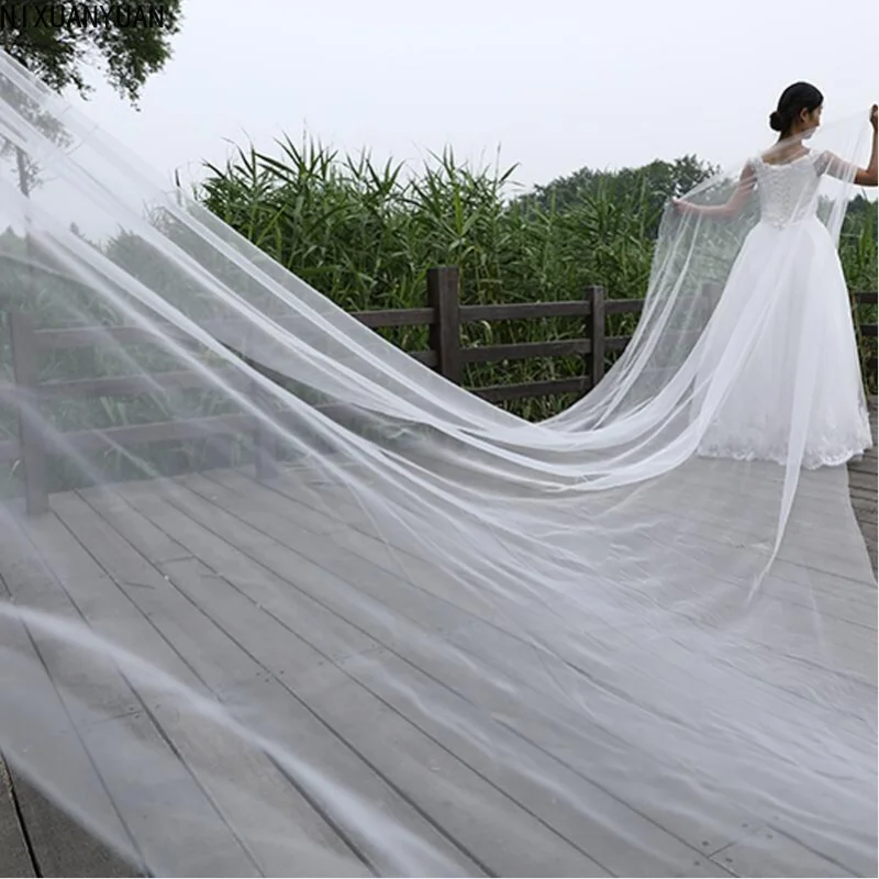 Tulle 웨딩 액세서리 긴 웨딩 베일 신부 헤어 액세서리 Novias 매혹적인 신부 베일 대성당 얼굴 결혼식 5M 10M