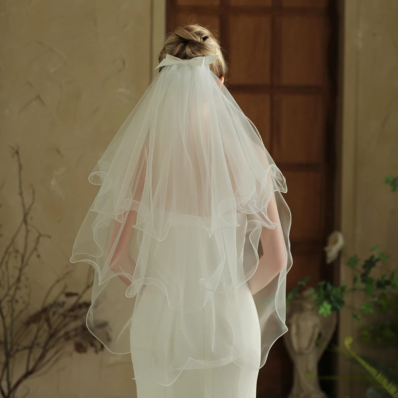 V377 new three-layer curled girly veil white short wedding photo styling prop hair clip style wedding dress wedding accessories