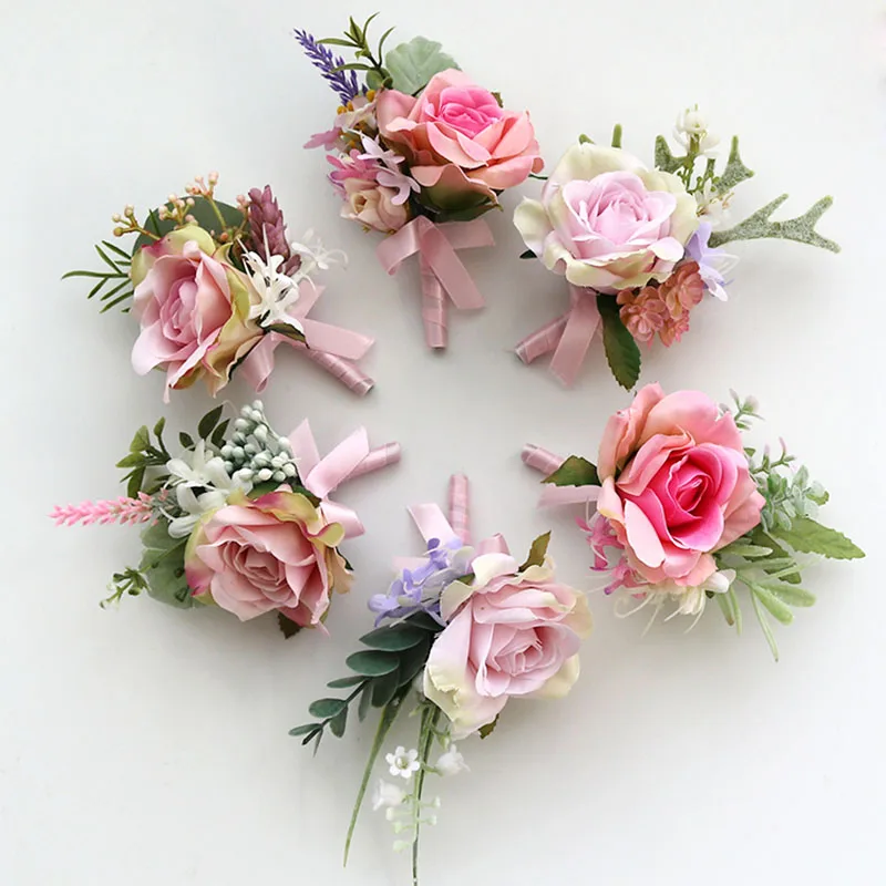 YO CHO Boutonniere 웨딩 코사지와 Boutonnieres 핑크 장미 실크 꽃 Boutonnieres 신랑 남성 결혼 웨딩 액세서리