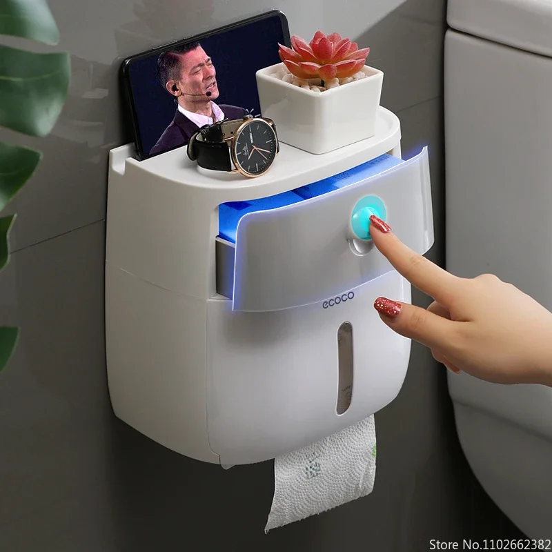 휴대용 화장실 롤 종이 홀더 플라스틱 방수 더블 레이어 종이 디스펜서 화장실 보관 상자 욕실 액세서리